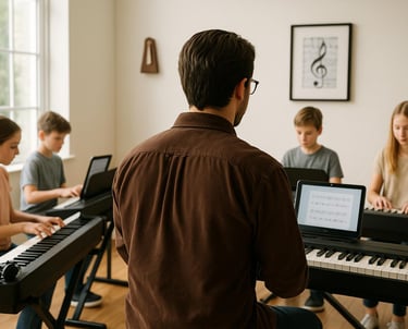 Personalized piano lessons focusing on technique, theory, and expression for all skill levels.